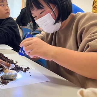 今回は「こん虫のヒミツ」で昆虫の不思議を体験し、カブトムシのよう虫を観察しました。